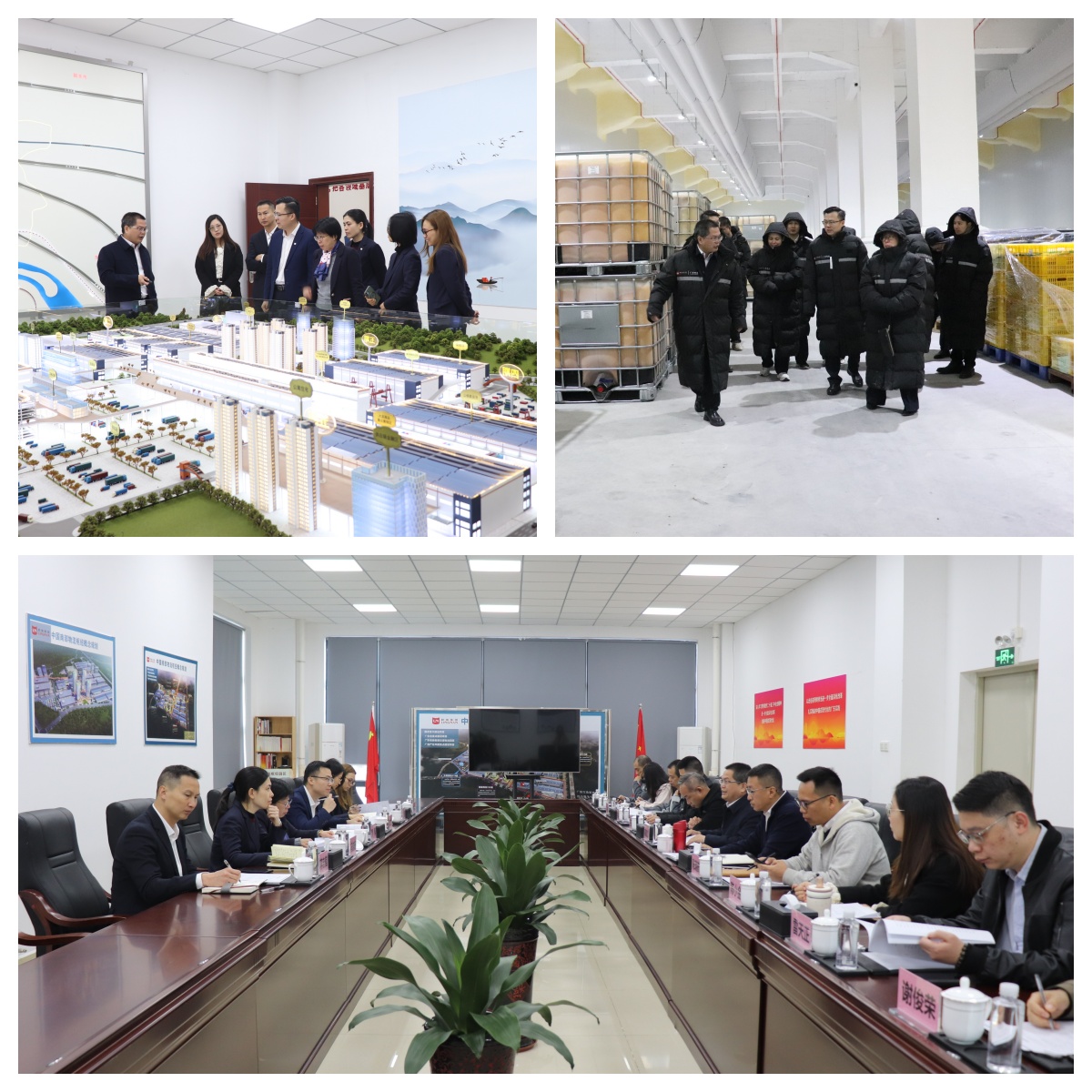 调研组先后参观了沙盘室、党建室,实地走访了二期冷库运作现场,深入了解冷库运营管理与供应链业务开展情况。座谈会上,容庭斌副总经理系统汇报了园区2026年经营目标与重点工作计划以及一季度“开门红”工作部署,并就招商运营进展、供应链一体化等重点项目作了介绍。信息技术分公司就年度研发经费的计划安排与落实路径作了专项汇报。