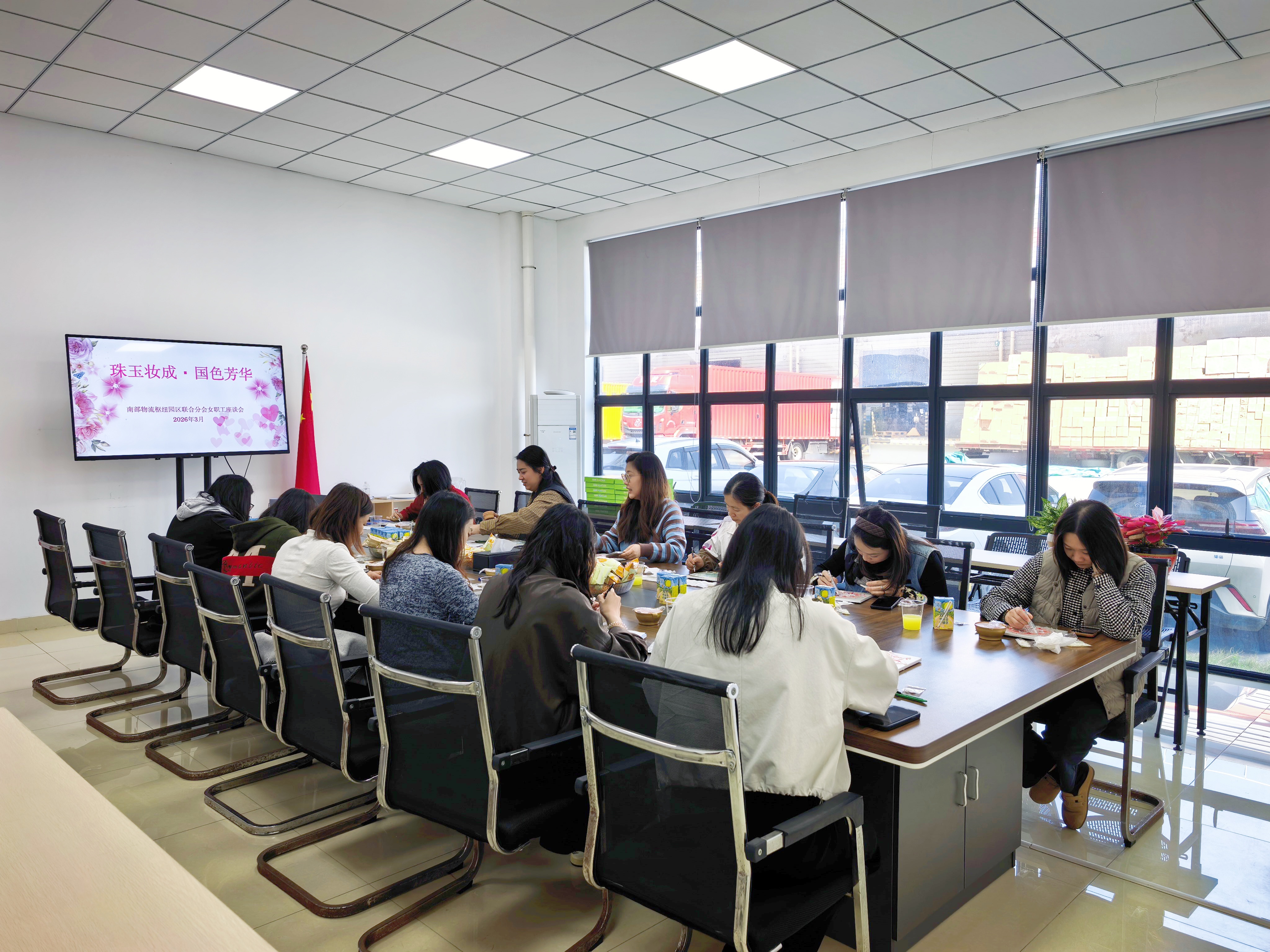 国风珍珠画DIY活动为园区女职工送上了一份独具匠心的节日礼物,既搭建了展示风采、交流情感的平台,也在现代物流枢纽播撒下传统文化的种子。活动进一步增强了团队凝聚力,激励全体女职工以更饱满的热情投身园区高质量发展,在平凡岗位上绽放不平凡的巾帼芳华,为"十五五"开局贡献巾帼力量。